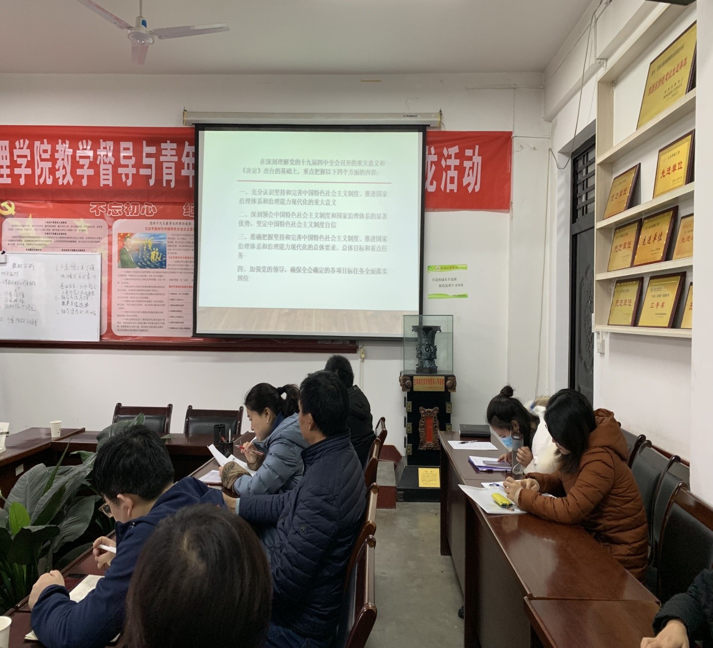 12月25日下午16点30分,best365在主楼207会议室召开党的十九届四中全会精神宣讲报告会,马克思主义公司铁锴博士应邀作了题为《坚持中国特色社会主义制度自信,推进国家治理体系和治理能力现代化》的宣讲报告。会议由公司党委书记段旭朝主持,物电公司全体教工、员工代表参加了宣讲会。