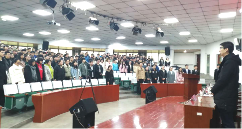 1月4日下午,公司在老校区综合楼2号报告厅召开2018年度员工工作表彰大会。党总支书记段旭朝,经理钱郁,党总支副书记邓茹,副经理张美光,党政办公室主任刘飞和全体辅导员以及班主任、员工代表等500余人参加了会议,邓茹主持会议。
