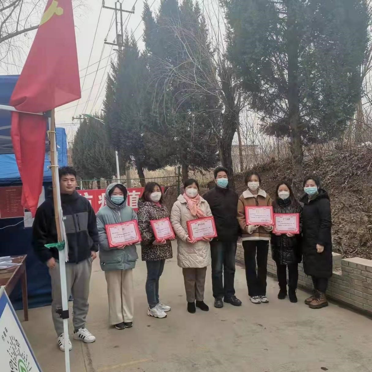 2022年春节前夕,杨馨雨同学获悉西安疫情形势日趋严峻,她积极响应家乡村内组织号召,主动投身于瓜洲村防疫工作一线。2022年1月26日,临近春节,她主动请缨加入村内疫情防控队伍,开始了为期半个月的志愿者工作。工作期间,杨馨雨以青春之名逆向而行,无条件服从村内统一安排,自觉担负分配岗位职责,协助村内做好防控宣传、监督扫码测温、卡口值守、租户及村民信息登记等工作。每天站岗执勤之余,杨馨雨还需收集整理疫情防控相关信息表,制作为电子版并上交组织。