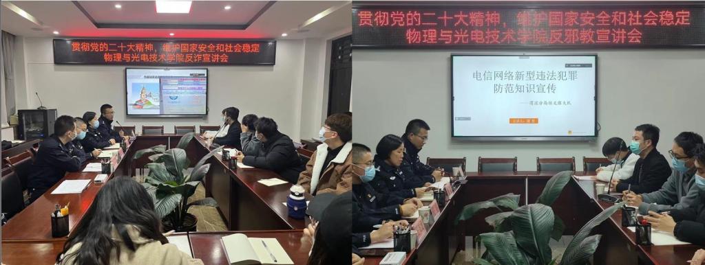 渭滨分局民警就电信诈骗的概念、形式、校园常见电信诈骗种类、如何预防等方面向同学们进行了讲解和揭露,教育同学们要提高识骗、防骗意识;也向同学们讲解了反邪教相关知识,希望同学们警惕邪教组织渗透,提高防范意识。贾蓓勉励同学们争做时代新人,并欢迎同学们在公司警务室咨询法律、法规相关问题。