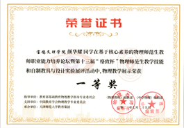 物理实验自制教具三等奖 |