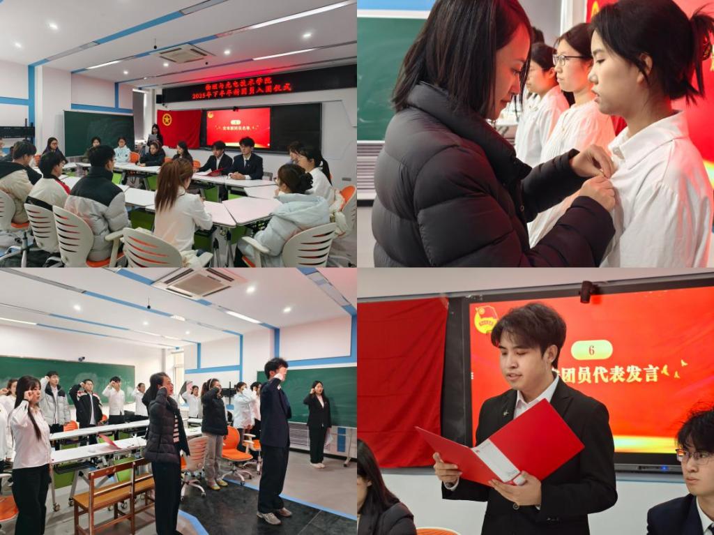 殷欣禾在对新团员的致辞中言辞恳切,满含对新入团青年的真挚祝福。她向新团员们寄语:未来的学习与生活中,希望大家既要树立远大理想、锚定青春目标,以共青团员的标准严格约束自我,主动扛起团员的责任与使命;更要实现“双入团”——不仅在组织上正式加入共青团,更要在思想上与团组织同心同向,在行动上践行团员的担当,始终以团徽为指引奋勇向前,用实实在在的行动为鲜艳的团旗增光添彩,让青春在坚守与奉献中绽放光芒。