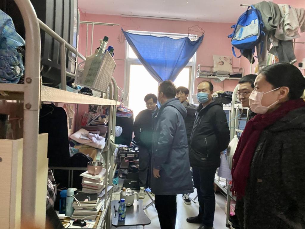 2021年12月29日下午,公司党委书记邓茹、党委副书记陈冠男、负责毕业生工作的辅导员走进毕业生公寓走访慰问。2021年全国硕士研究生考试落下帷幕,本次走访慰问目的在于摸排2018级毕业生在校情况,掌握学习生活状况与就业状况,缓解毕业生因疫情未能回家而产生的焦躁情绪,同时进一步检查督促宿舍防疫工作。