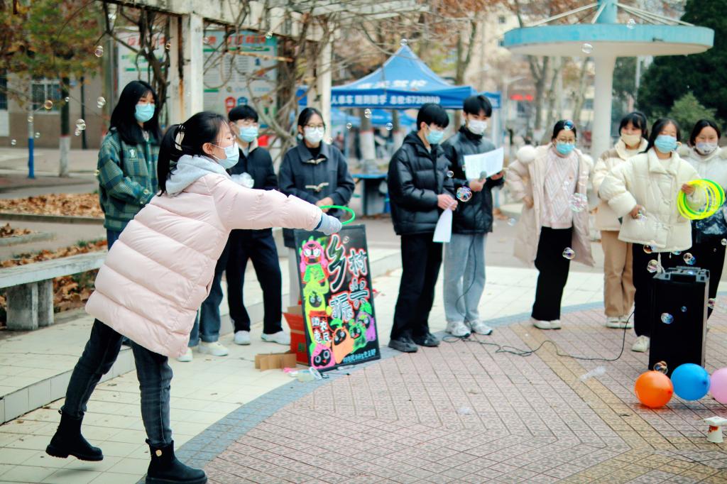 支部副书记单琦组织全体党员学习了党的二十大关于全面推进乡村振兴战略内容,同时向现场学生和社区居民简要介绍“水果帮”项目,部分本科生党员在活动现场交流了学习心得。围绕“乡村振兴,助农惠民”主题,本科生党支部“水果帮”项目组成员在活动前期对接公司2名水果农户家庭困难员工,通过组织“水果圈圈乐”游戏吸引来往员工、社区居民购买质优价廉的新鲜水果,既给员工和居民带来了实惠,也帮助农户员工家庭解决了水果销售难题。