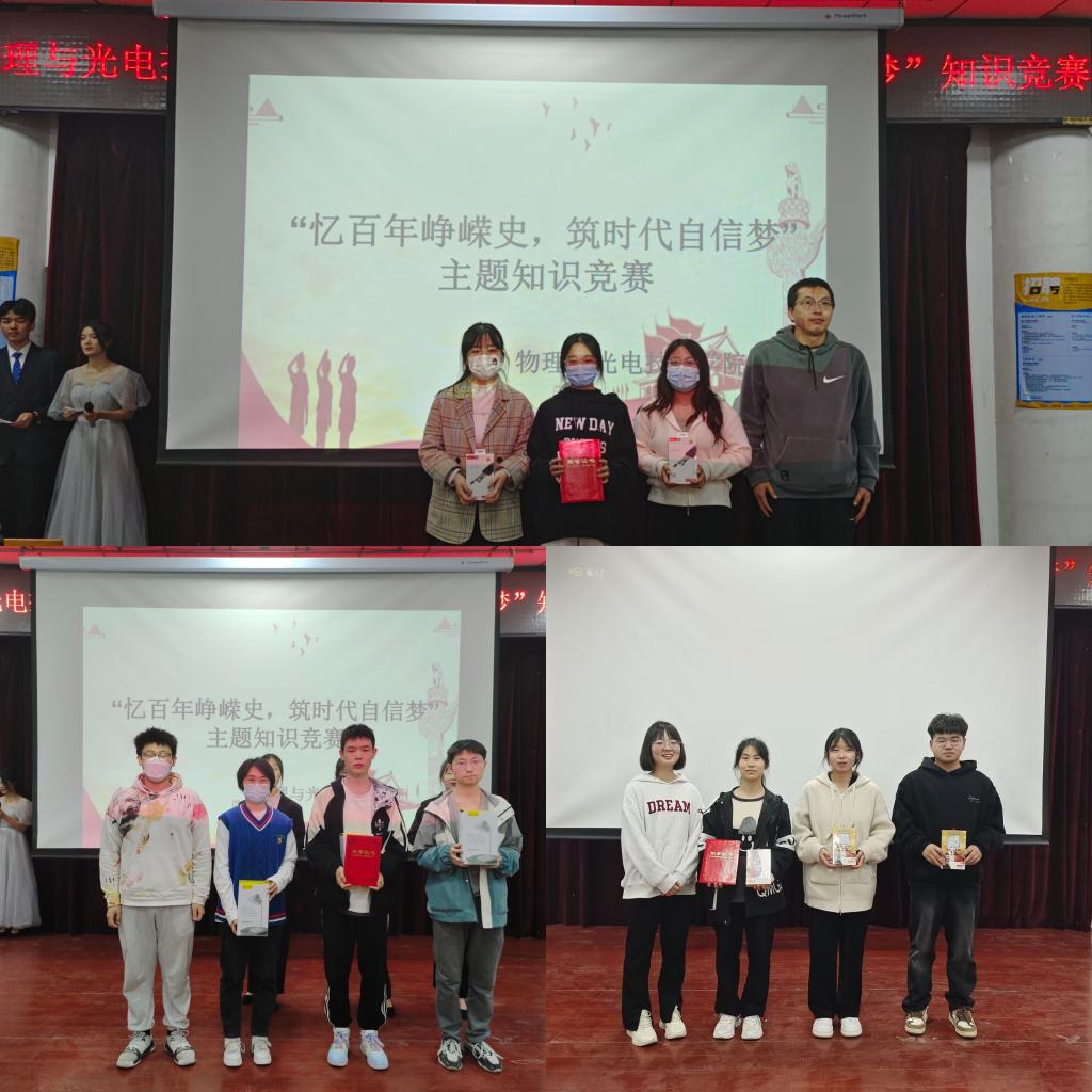 本次竞赛以班为单位共八支代表队参赛。设置必答题、抢答题、风险压分题和互动抢答四个环节,竞赛内容以专业知识为基础,涵盖党史、团史、科技、校纪校规等。各参赛代表队选手们沉着应对,冷静作答,拼手速、比知识,你追我赶、团结协作,互动环节大家极参与、踊跃回答、气氛活跃,运用自己平日所学和知识的积累,赢得现场人员的阵阵掌声。经过2个小时的激烈角逐,2021级物理学一班代表队获得一等奖,2022级测控仪器与技术一班代表队获得二等奖,2022级电子科学与技术二班代表队获得三等奖。