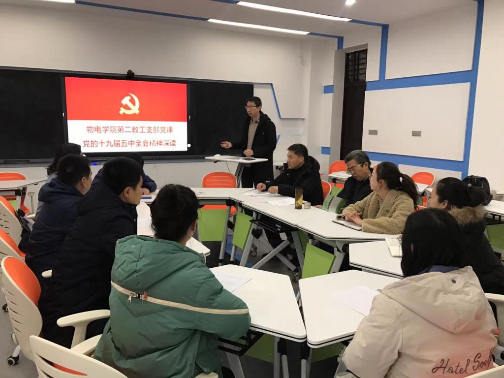 11月25日下午,在主楼201教室,公司副经理刘飞以“党的十九届五中全会精神深读”为题为教工第二支部全体党员讲授党课,用“意义、形势、目标、举措、作为”5个关键词谈了个人的学习体会。并结合工作实际以及调研成果,查找了公司团队建设、人才培养与教学研究等方面存在的主要问题,提出了进一步凝练学科方向、加强科学研究与科研平台建设,提升学科实力的思路,希望全体教工党员充分认识党的十九届五中全会的全局性历史性意义,全面把握“十四五”主要目标和到2035年远景目标,坚决做到“两个维护”的思想和行动自觉,将会议精神与个人教学、科研充分结合起来,努力为“十四五”开好局、起好步作出应有的贡献。