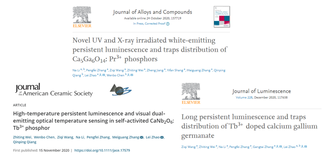 近日,公司2019级物理学硕士研究生李娜、魏志婷、王子琪三名同学在电子俘获型发光材料方面的研究工作取得可喜进展,分别在SCI一区期刊Journal of Alloys and Compounds、Journal of the American Ceramic Society以及Journal of Luminescence发表研究论文。