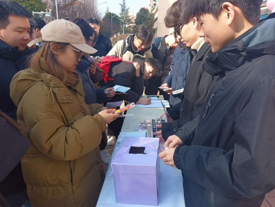 活动现场,公司为各位考生精心准备了“考研加油包”盲盒礼品,各位同学现场抽取文具盲盒后兑换相应祝福礼和志愿者手写祝福贺卡,现场充满了惊喜与感动。横幅承载不住鸿鹄之志,黑色笔迹留下铿锵誓言,各位考生在横幅上留下自我勉励的考研誓词,学弟学妹也纷纷在横幅上留下了对各位考研学子的祝福。参与活动的考研学子表示,公司为大家准备的这份特殊的“考研温暖”使他们备受鼓舞,增强了逐梦研途的信心,有效缓解了考研焦虑情绪,他们必将带着公司这份美好祝福与期望沉着应对研究生考试,为自己交上最满意、最无悔的答卷。