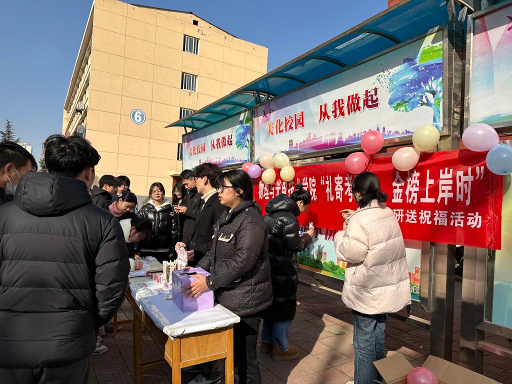 2024年全国硕士研究生考试在即,为落实立德树人根本任务,增强考研学子备考信心、调整备考心态,为考生蓄能助威,12月19日中午,best365团总支于石鼓校区一食堂门口举行“礼寄考研路,金榜上岸时”考研送祝福活动。80余名考研学子参与了活动。