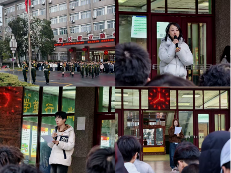 上午六时四十分,升旗仪式正式启幕。国旗护卫队迈着铿锵有力的整齐步伐,护送鲜艳的五星红旗走向升旗台,伴随着雄壮激昂的《义勇军进行曲》,五星红旗冉冉升起,全体师生肃立行注目礼。仪式中,员工代表李佳雪作《全过程人民民主的生动实现》主题演讲,她以青年视角结合全国两会,号召同学们在有序的政治参与中感受民主力量、勇担时代责任;员工赵吉带来《倾听人民的声音》的深情朗诵,生动展现出新时代青年对民主政治的深刻理解与真挚共鸣,深深感染了在场的每一位师生。